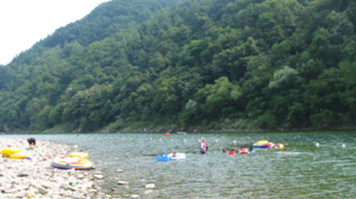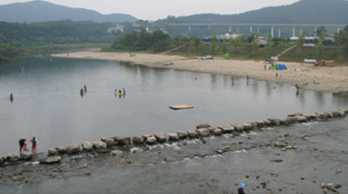 넓은 모래사장과 자연림(밤나무,미루나무)과의 조화를 이루며, 풍부한 어족자원(쏘가리,메기 등)으로 낚시하기에 적당한 장소이다.